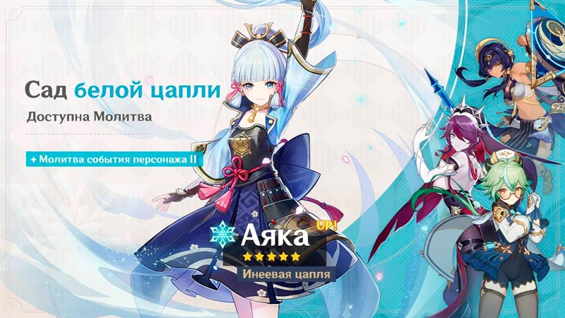 С выходом Инадзумы с 21 июля по 10 августа 2021 года впервые в молитвах появилась крио мечница Аяка, ее сигнатурный меч «Рассекающий туман» и «Небесная ось».