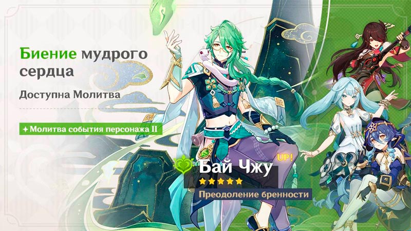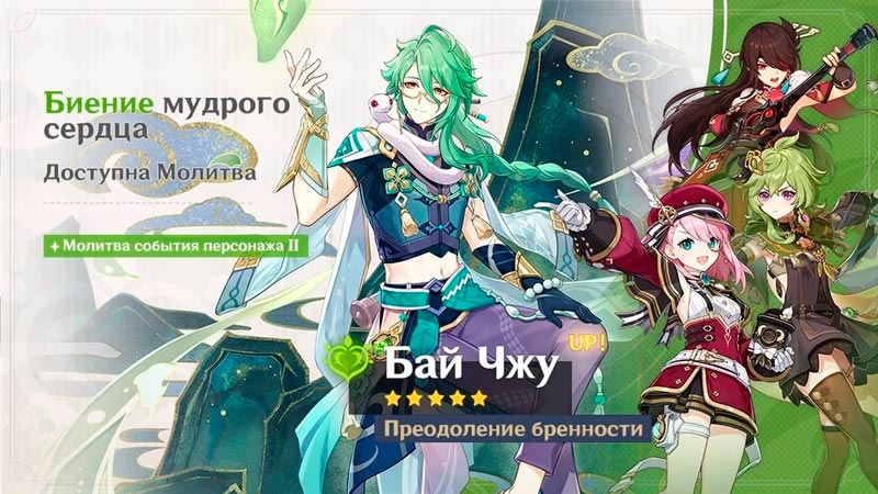 Патч 5.8 подходит к своему концу, поэтому в игре сейчас доступны молитвы второй половины обновления, а именно баннеры анемо каталиста Странника и дендро хиллера Бай Чжу, которым составляют компанию Бэй Доу, Лайла и Фарузан. Параллельно доступна молитва оружия «Воспоминания Тулайтуллы» и «Великолепие лазурного свода».
