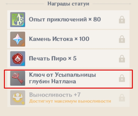 - 2 ключа за прокачку статуи Семи Архонтов в регионе. Один выдается на 1 уровне статуи, а второй – на 3 уровне);