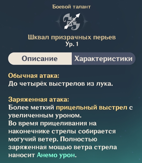 - Наносимый ими Анемо урон имеет характеристику Ночного духа и считается уроном заряженной атаки;