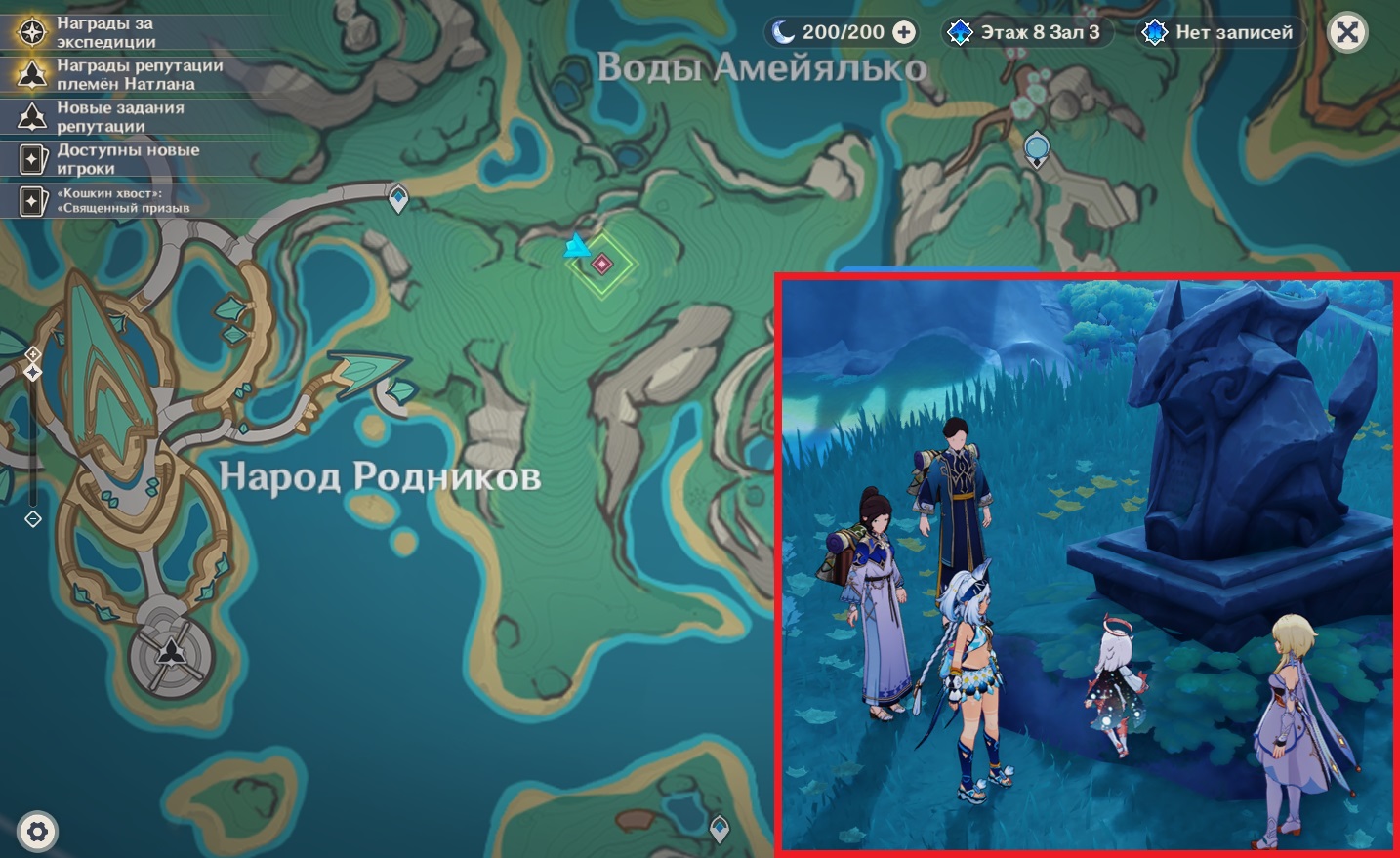 Во время следующей кат-сцены вам покажут, как проводник ищет подсказки, позволяющие найти путь к таинственному острову. Собрав все, что нужно, он попросит отправиться в указанное место, находящееся недалеко от ближайшей статуи Семи Архонтов.