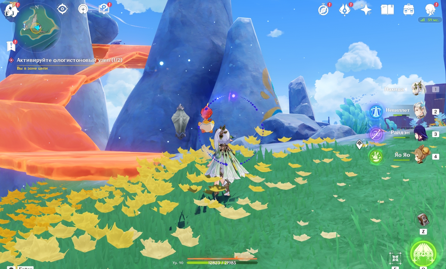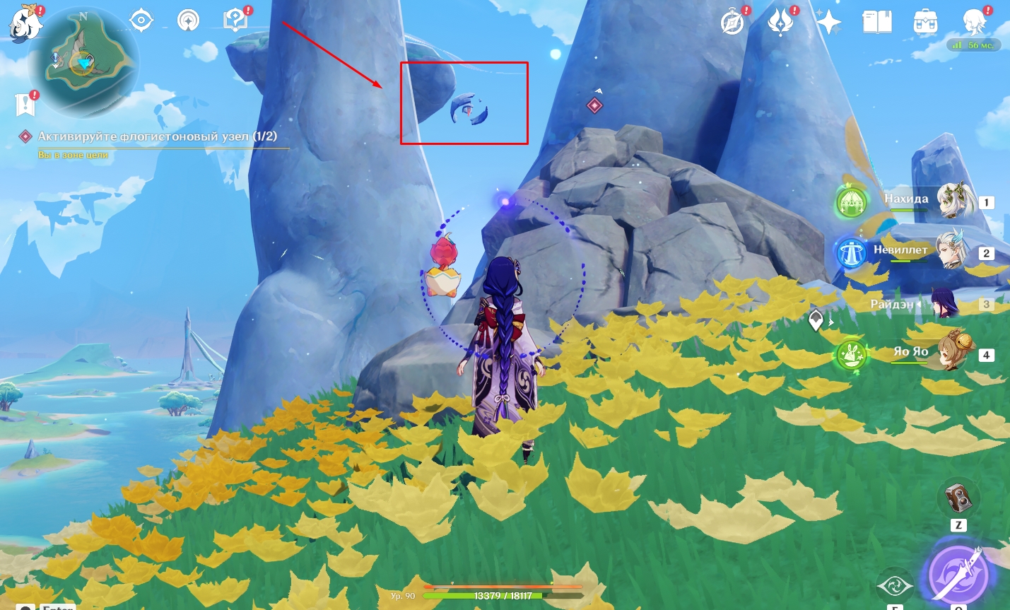 После разговора с Муалани и учеными из Сумеру, вам нужно отыскать Духовный путь, с помощью которого можно попасть на таинственный остров. Для этого нужно активировать несколько флогистоновых узлов. На изображении ниже показано, где они находятся.