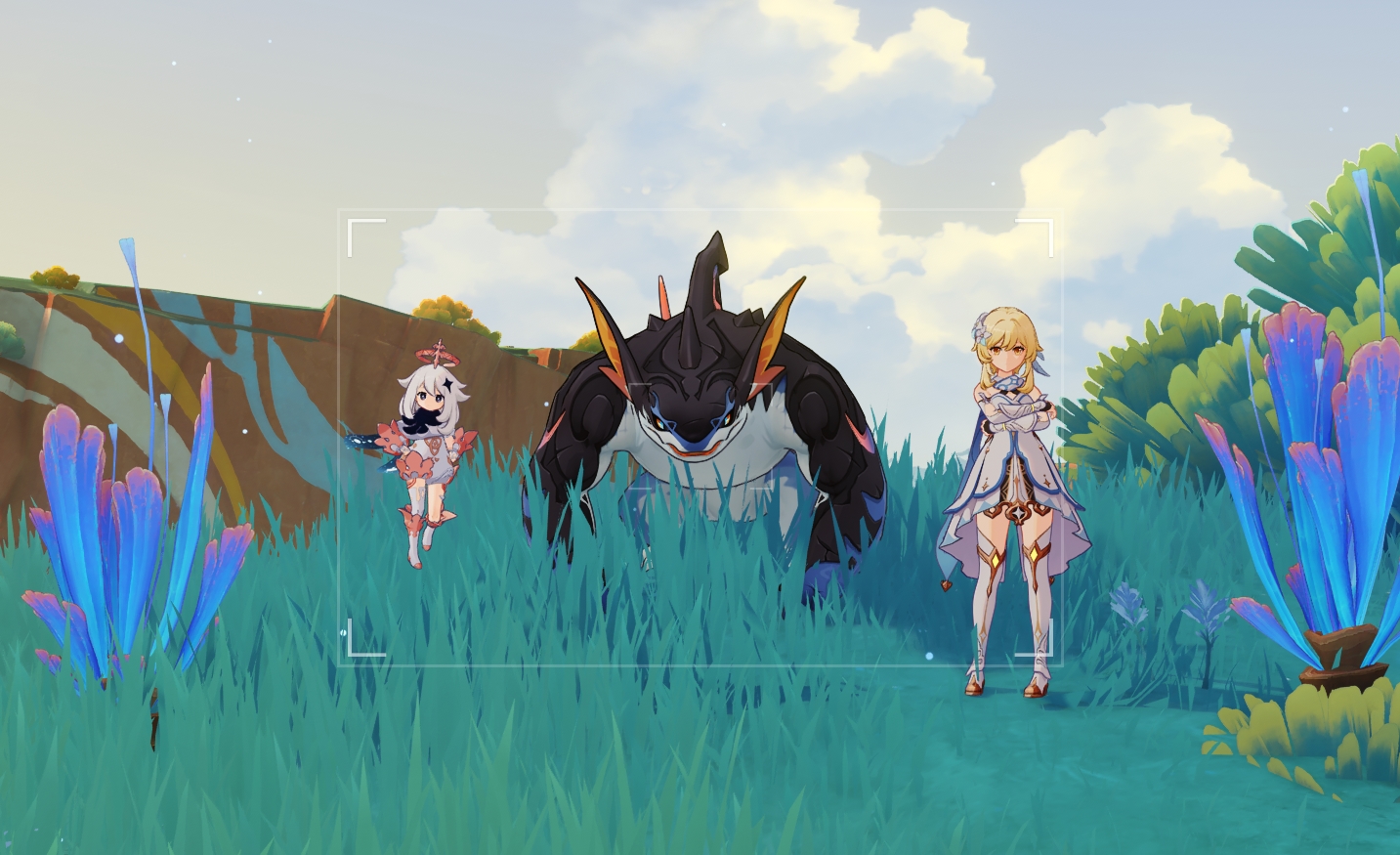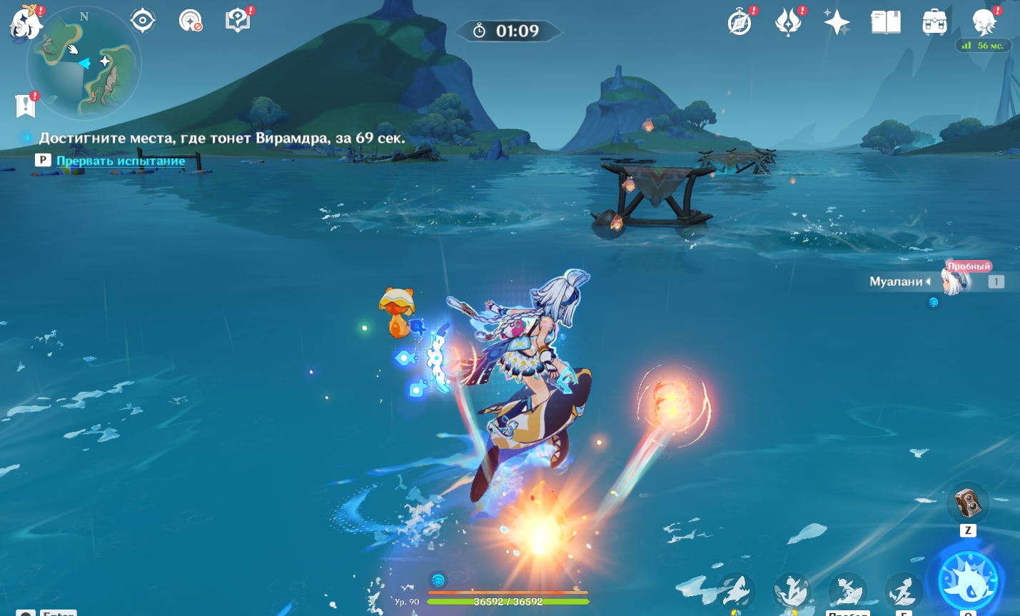 - Подойдите к воде и используйте элементальный навык, чтобы призвать серф-акулу;