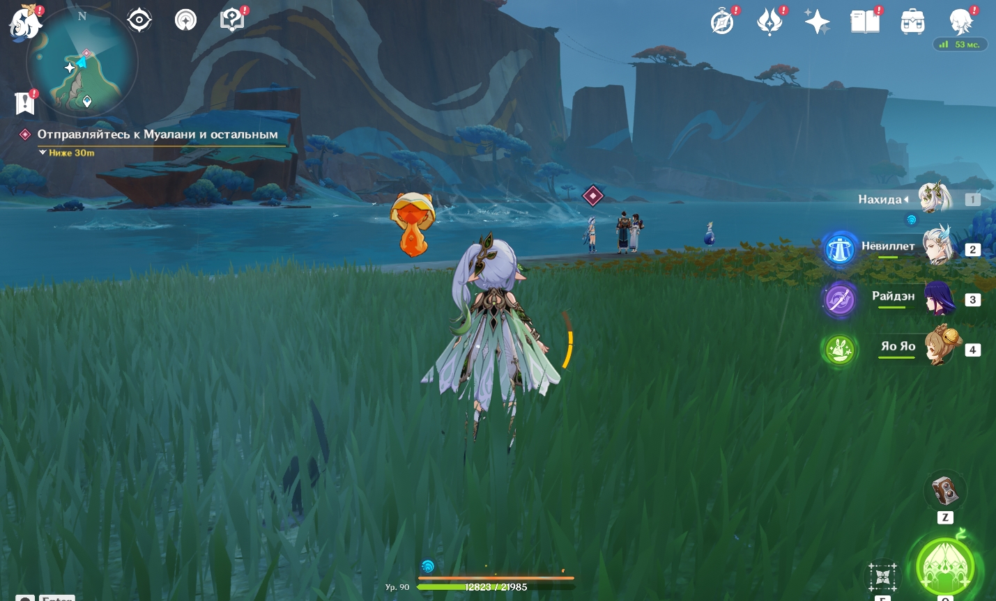 Амина вручит героине кошелечек с морой и укажет область, где мошенники чаще всего появляются. Она находится на севере поселения. Прибыв туда, вы увидите группу людей. Один из них заинтересуется нами и предложит услуги проводника на таинственный остров. Но на удивление никакой платы за это он не попросит. Следуйте за квестовым маркером, чтобы найти мужчину на западе Вод Амейялько.