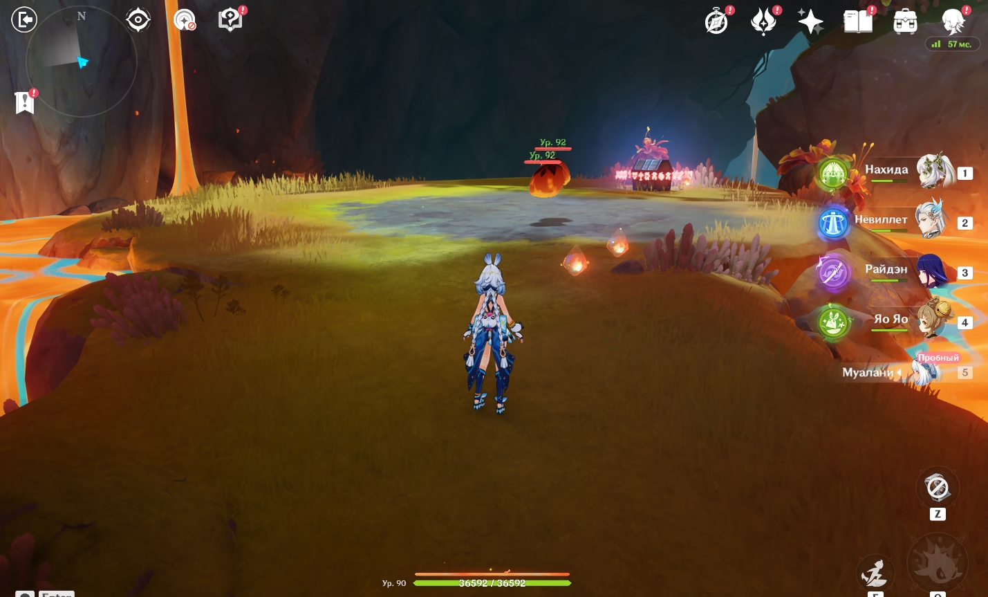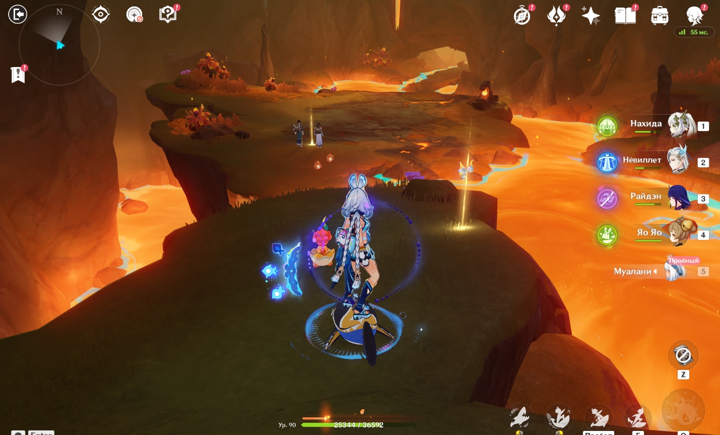 Обратите внимание на то, что потоки «лавы» (флогистона) наносят высокий урон активному персонажу. Старайтесь не попадать в них! Однако помните, что находясь на серф-акуле Муалани не получает урон от передвижения по флогистону.
