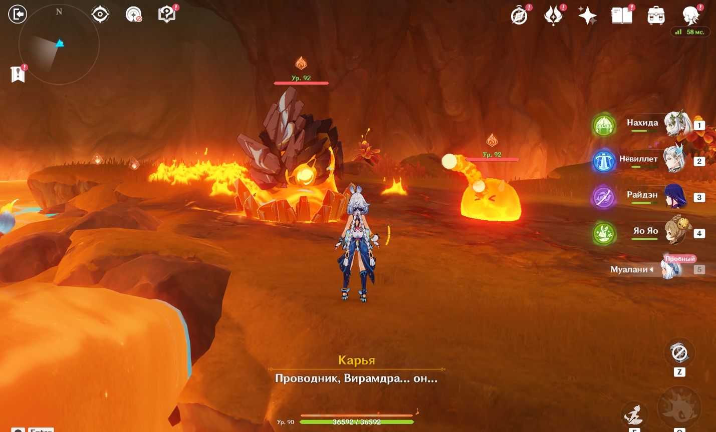 Когда отдых завершится, поговорите со своими спутниками на берегу возле водоворота, а после заплывите в него. Он приведет вас в подводные пещеры. Следуйте за квестовым маркером, пока не окажетесь в области с жидким флогистоном. Посмотрите кат-сцену, разберитесь с пиро слаймами (несколько волн монстров), заберите награду из сундука и продолжайте идти вперед.