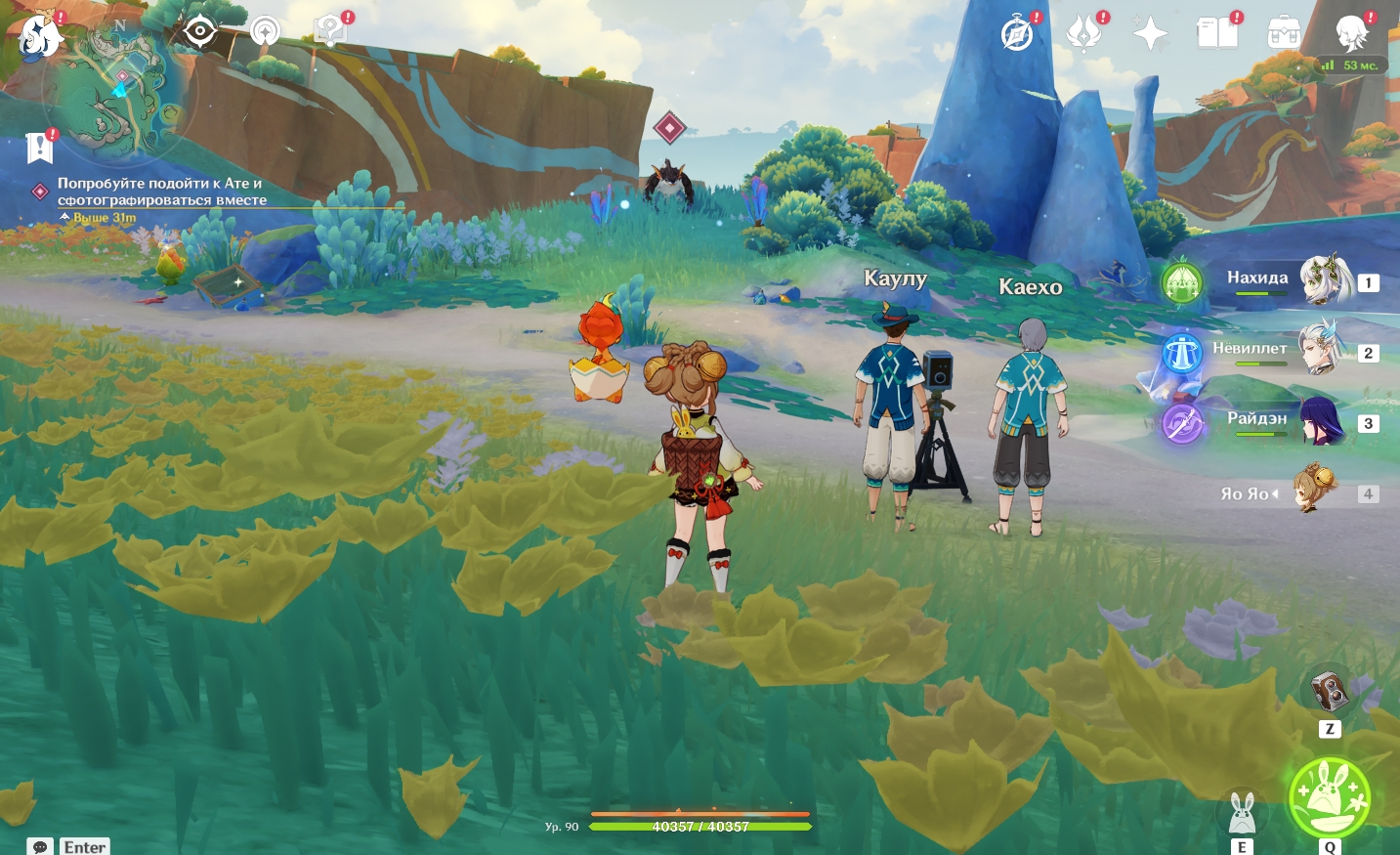 Добравшись до отмеченного места, вы увидите проводника Каулу в компании фотографа Каехо. Они скажут, что Путешественница должна взаимодействовать с кохолазавром по имени Ата, чтобы узнать откровение, которое поможет попасть на таинственный остров. Но… за это нужно заплатить мору.