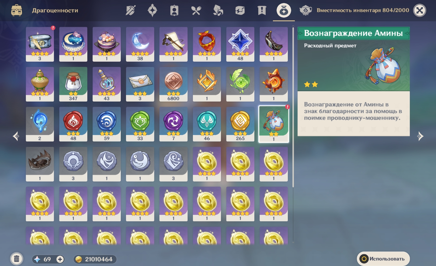 - Вознаграждение Амины (мешочек, в котором лежит 50 тыс. моры).