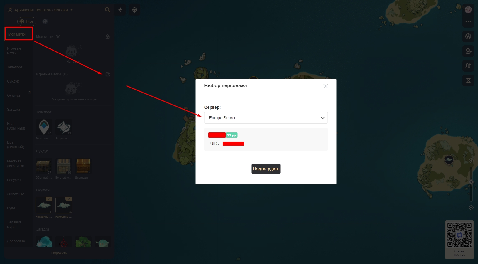Главной особенностью официальной интерактивной карты Архипелага Золотого Яблока 2.8 стало то, что у вас есть возможность синхронизировать метки из игры. Для этого вам нужно сделать так: