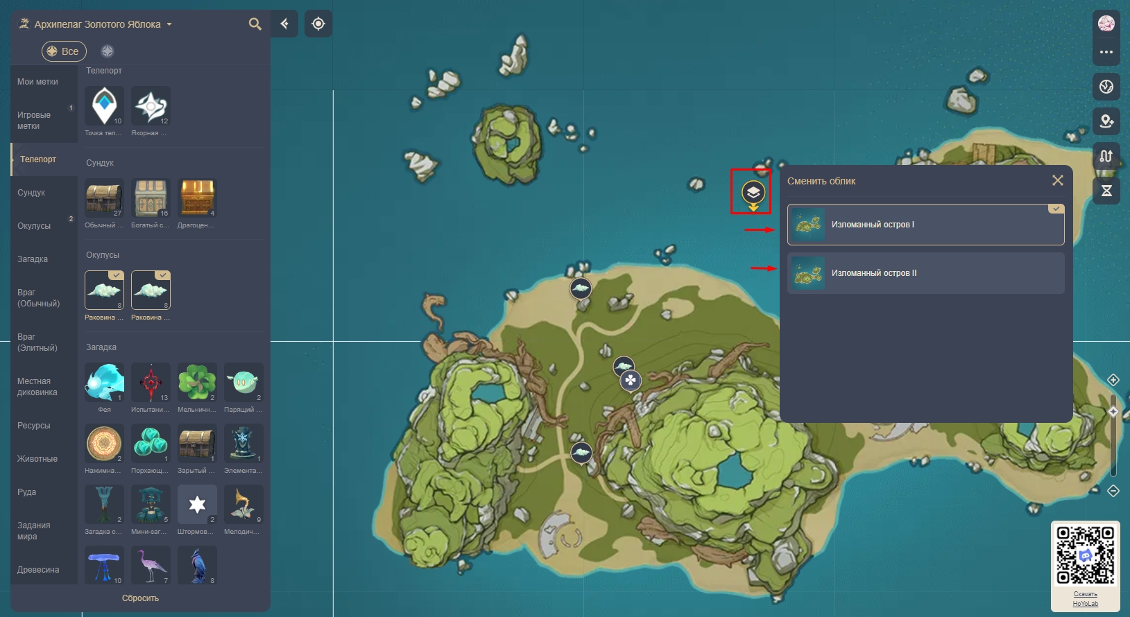 Интерактивная карта, представленная ниже, создана специально для облегчения процесса исследования Архипелага Золотого Яблока в обновлении 2.8 и других областей Тейвата.