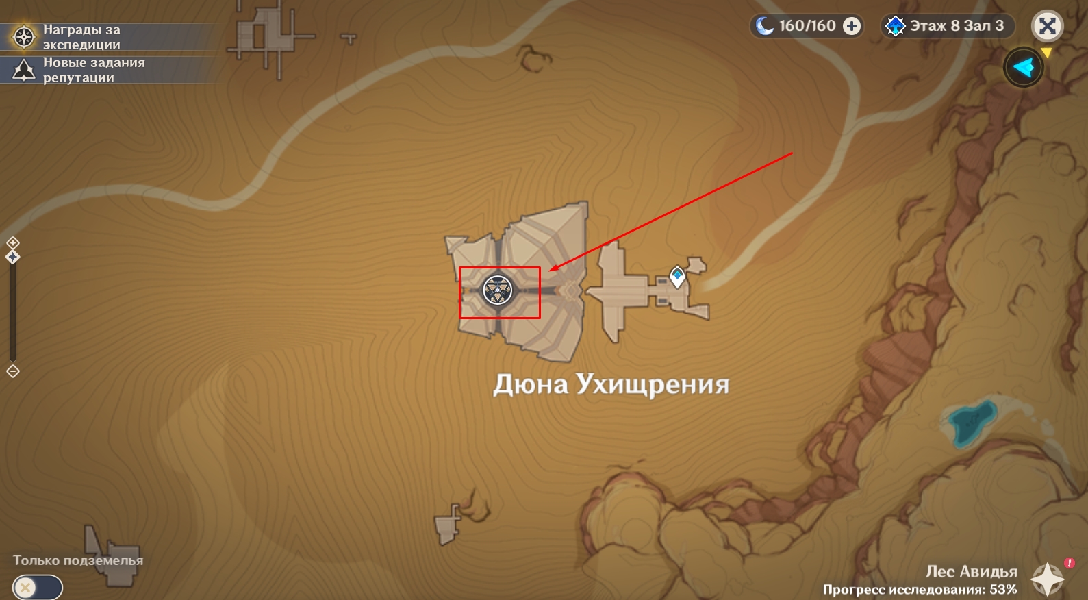 Чтобы сразиться с Алгоритмом полуизвечной матрицы оператора наблюдения, отправляйтесь К Дюне Ухищрения в Пустыне Колоннад, Сумеру. Если вы уже исследовали эту зону, то воспользуйтесь телепортом, который находится буквально возле босса, точнее возле пирамиды, в которой обитает этот противник.