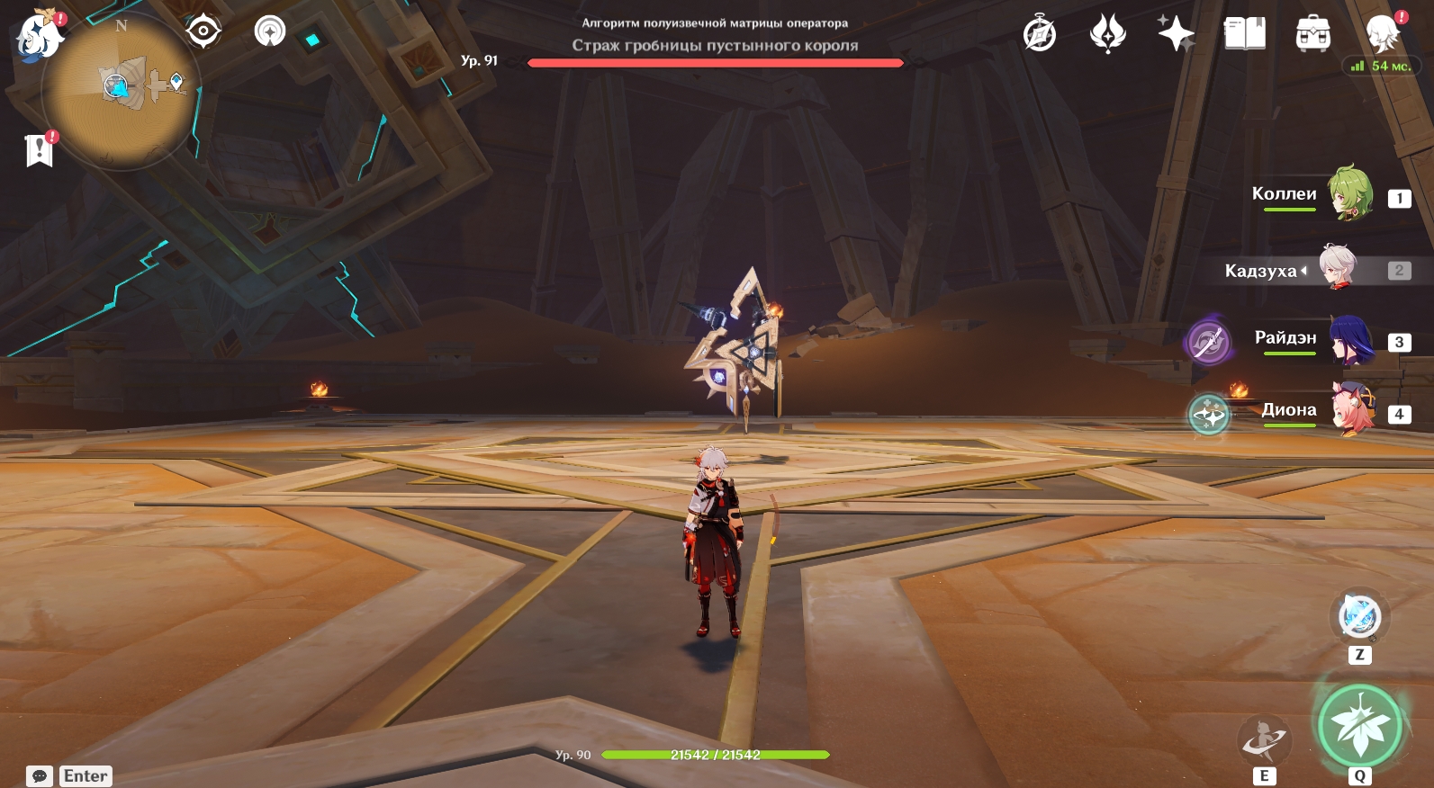Обратите внимание на то, что совсем не важно, насколько прокачан ваш дендро-персонаж. Главное, чтобы он успел наложить на компоненты босса эффект «Дендро». После переключайтесь на электро-героя и наносите элементальный урон, чтобы создать реакцию «Катализ», разрушить их и вывести Алгоритм полуизвечной матрицы оператора наблюдения из невидимости.