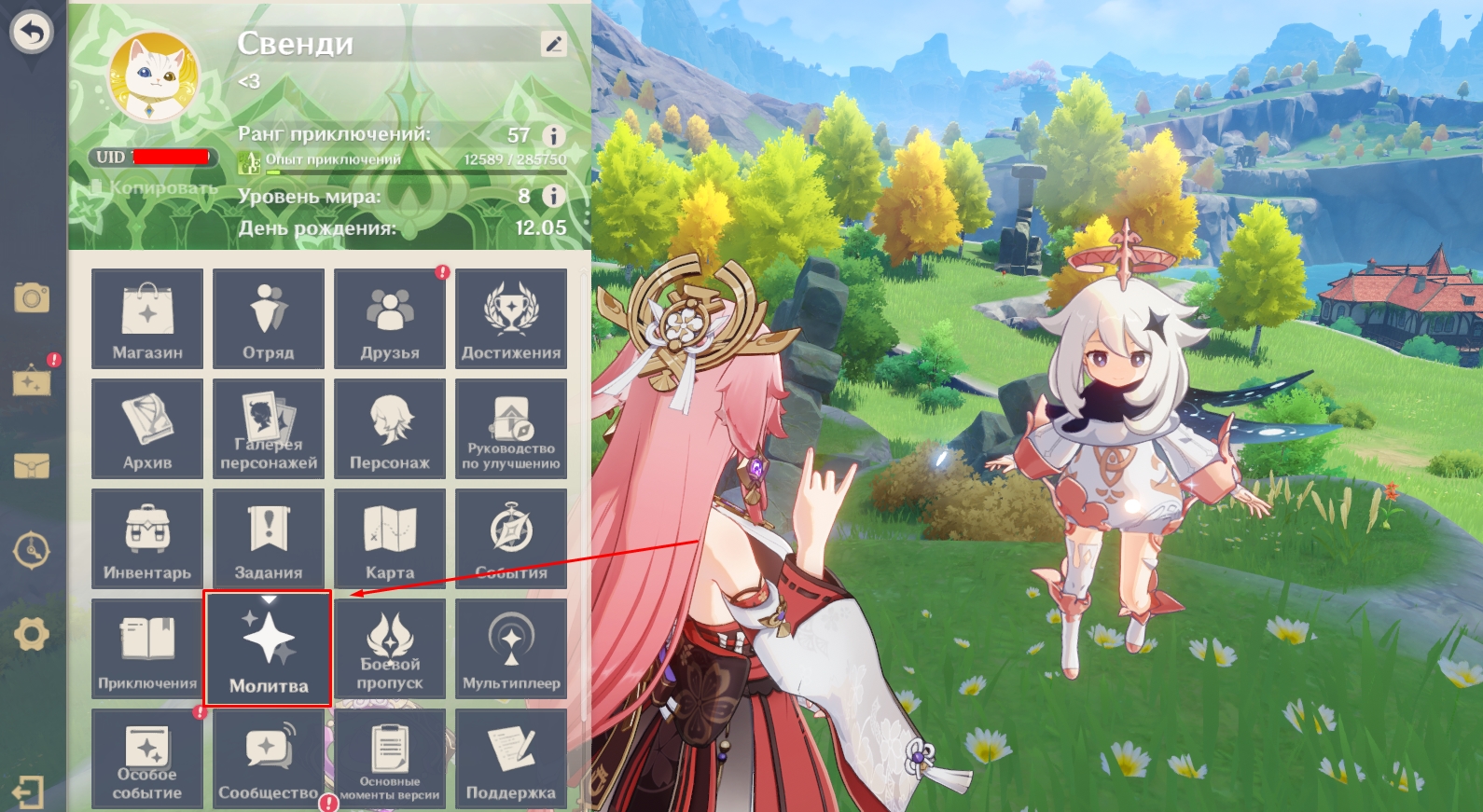 - Вернитесь в Genshin Impact на открытую страничку Журнала молитв;