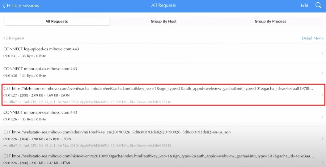 - В открывшемся окне найдите и нажмите строку с текстом «https://hk4e-api-os.mihoyo.com/....JSON»;