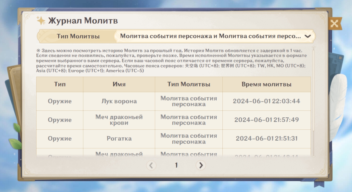 - Точны ли расчеты счетчика молитв? Да. Вся информация о ваших крутках точная. Однако не забывайте, что история ваших молитв через определенное время очищается.