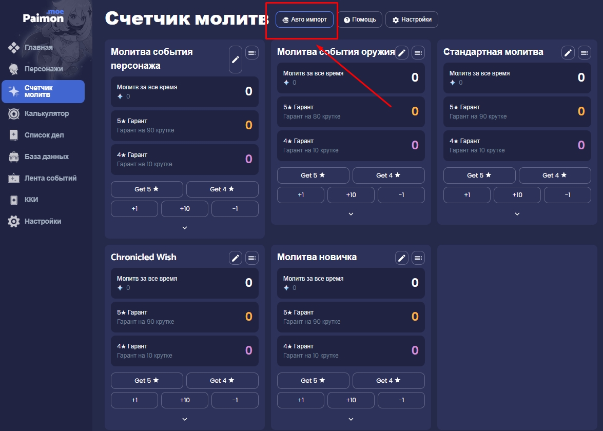 2. Как посмотреть историю своих круток в Genshin Impact на Paimon.moe (ПК)?
