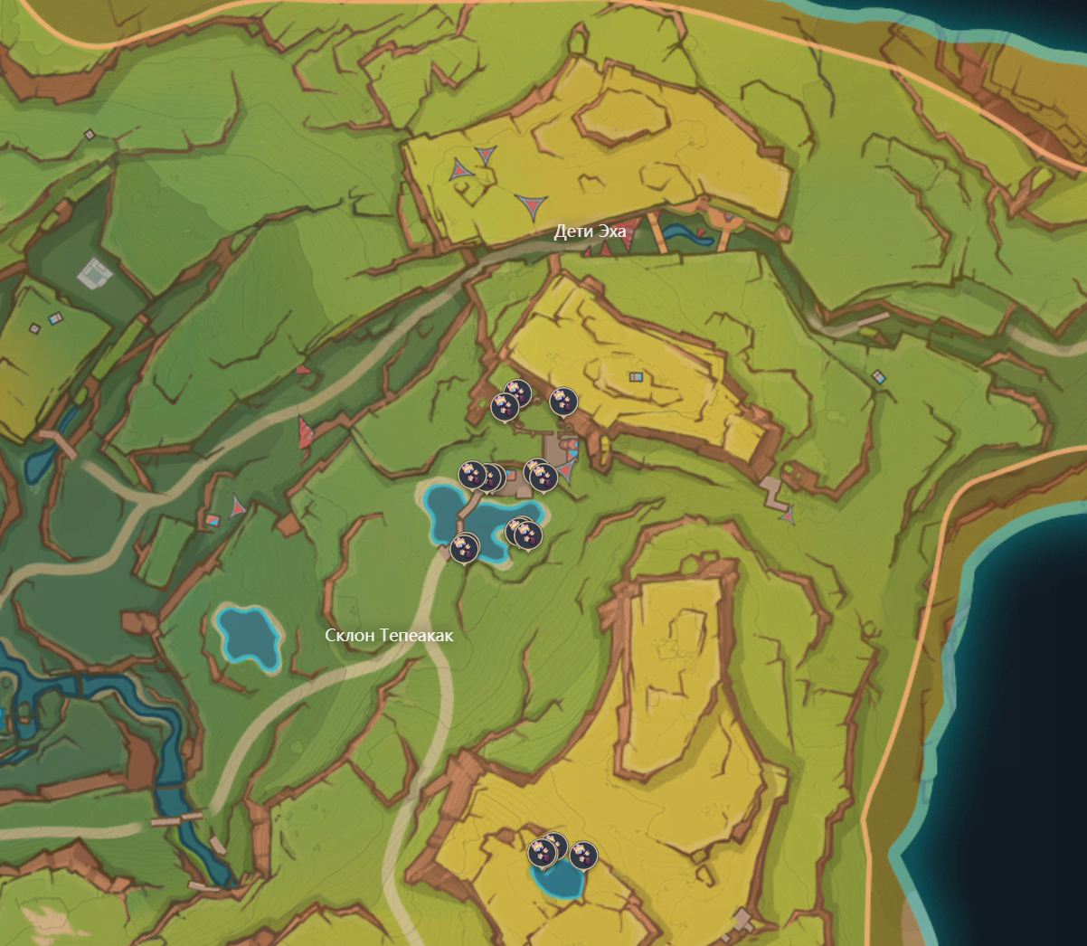Если возникли трудности с поиском ресурсов, воспользуйтесь официальной интерактивной картой Тейвата.