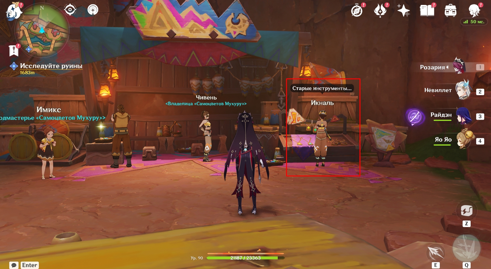 - Переместитесь в поселение Детей Эха и разыщите НПС по имени Икналь. Она стоит у прилавка «Самоцветов Мухуру». В разговоре с девушкой выберите следующие варианты диалогов, чтобы получить 4 диковинки: