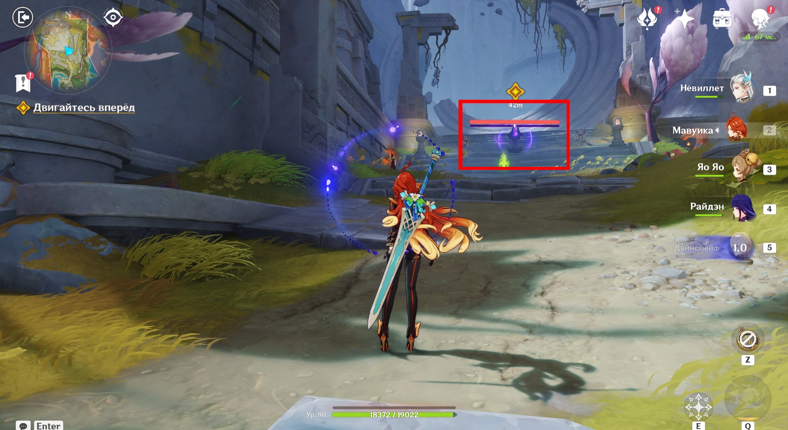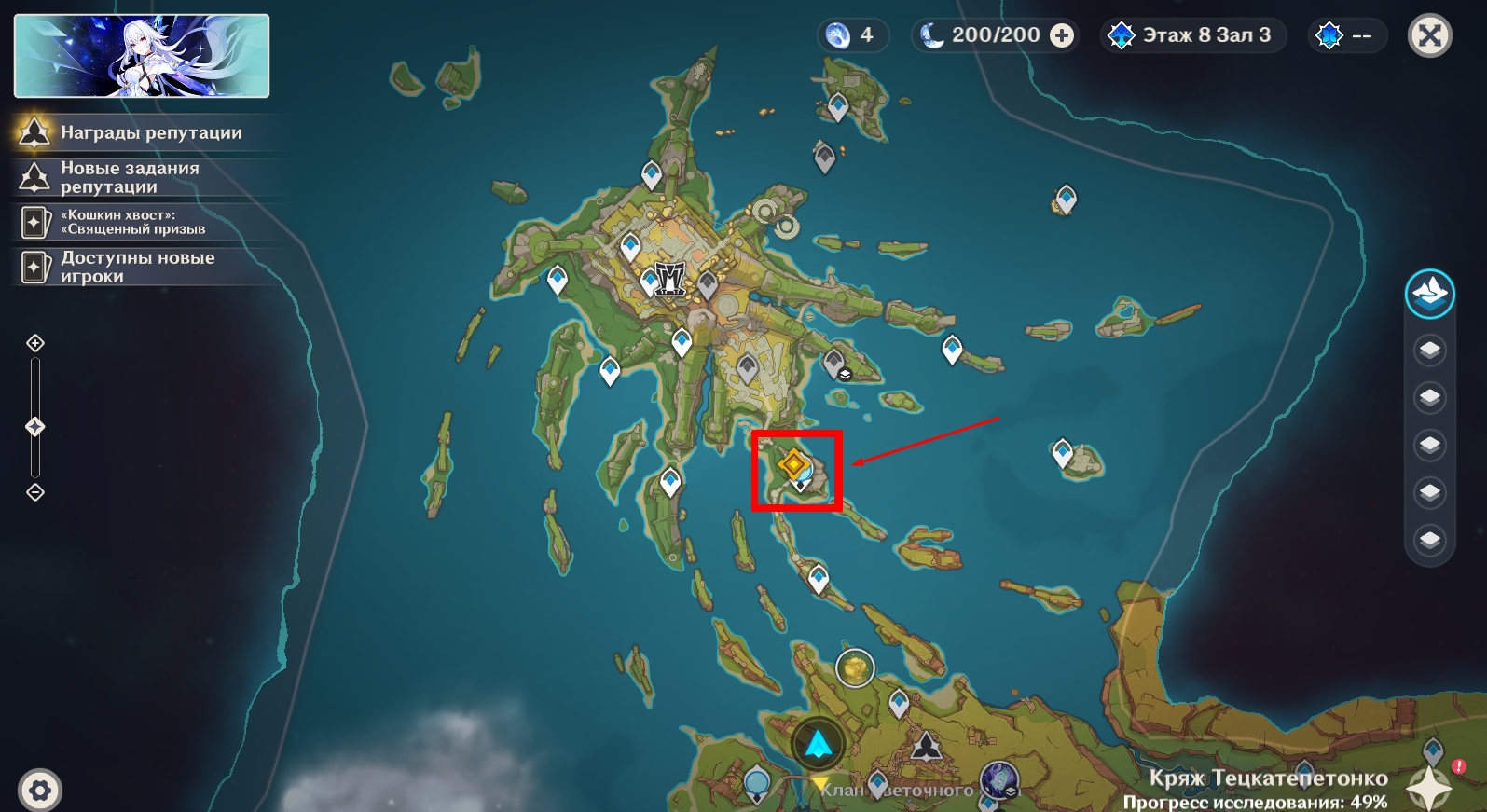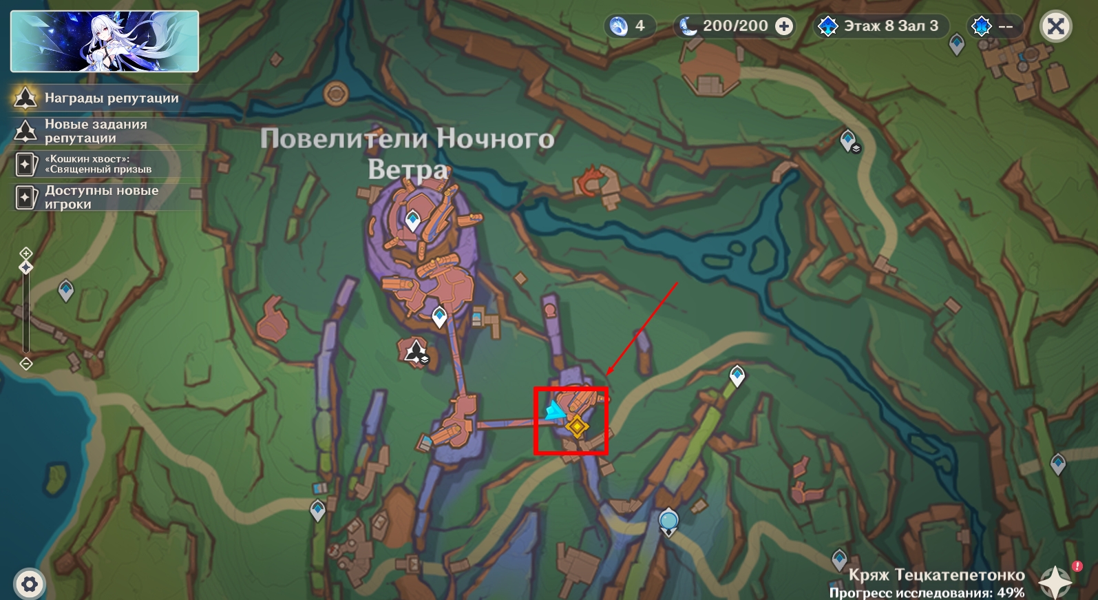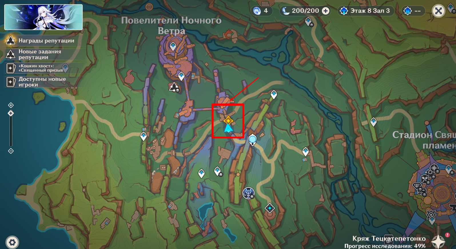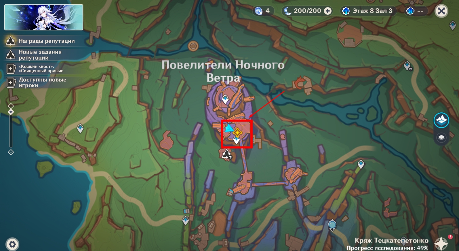 Телепортируйтесь к статуе Семерых Архонтов в Очканатлане и инициируйте нападение на опорный пункт врага, взаимодействовав с обелиском.