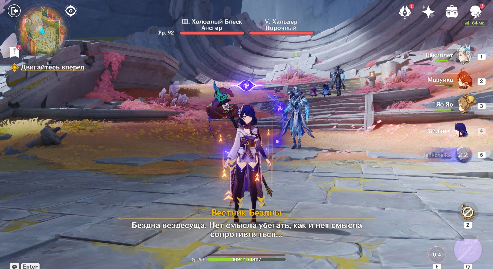 Дальше надо разбить еще один Подсвечник мрака – рядом с ним вы встретите Гидро/Электро Магов Бездны и 1 Вестника Бездны.