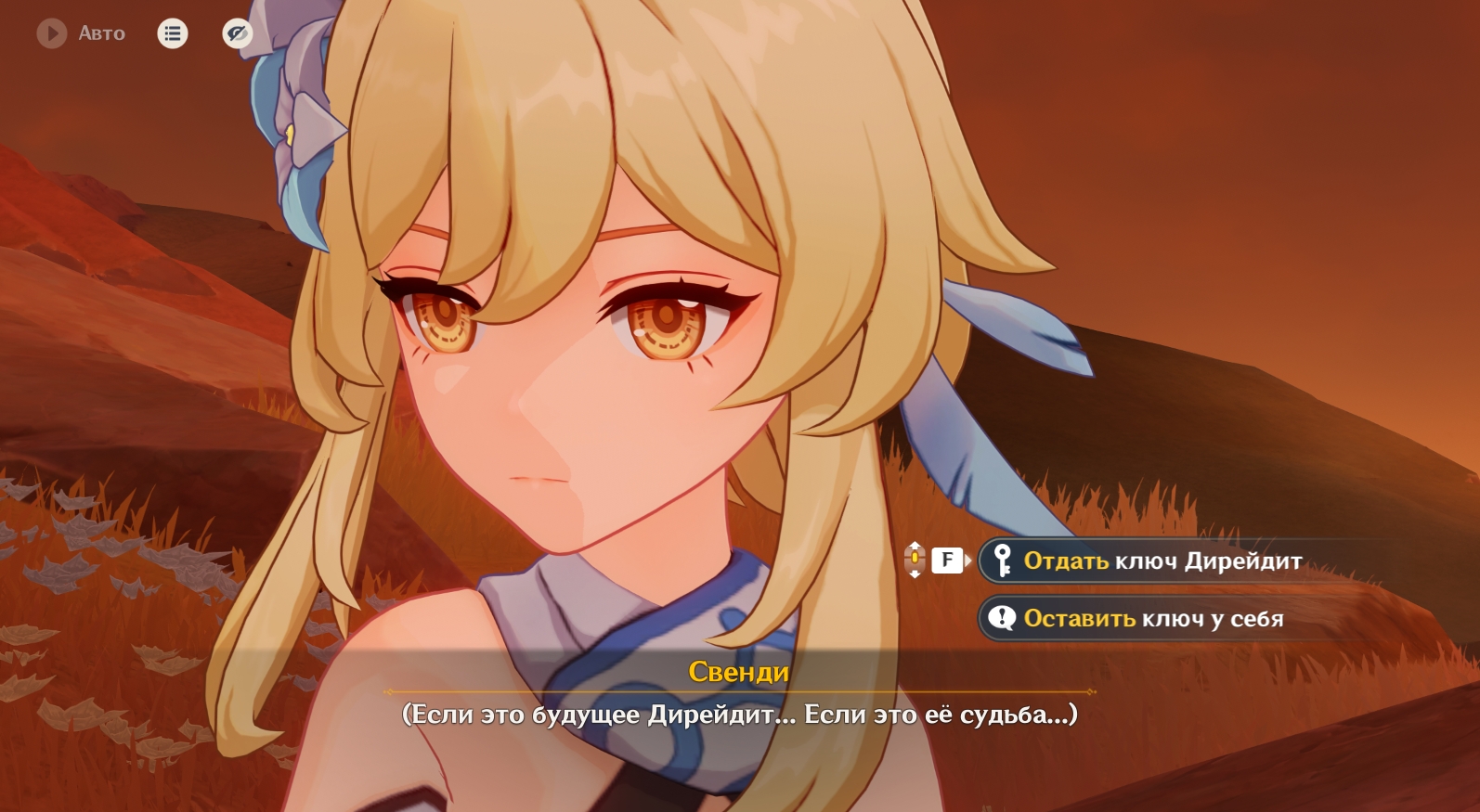 - Если не отдадите ключ, то сможете сохранить его на память. Бонусом будет дополнительная кат-сцена, в которой Люмин встречает Итэра.