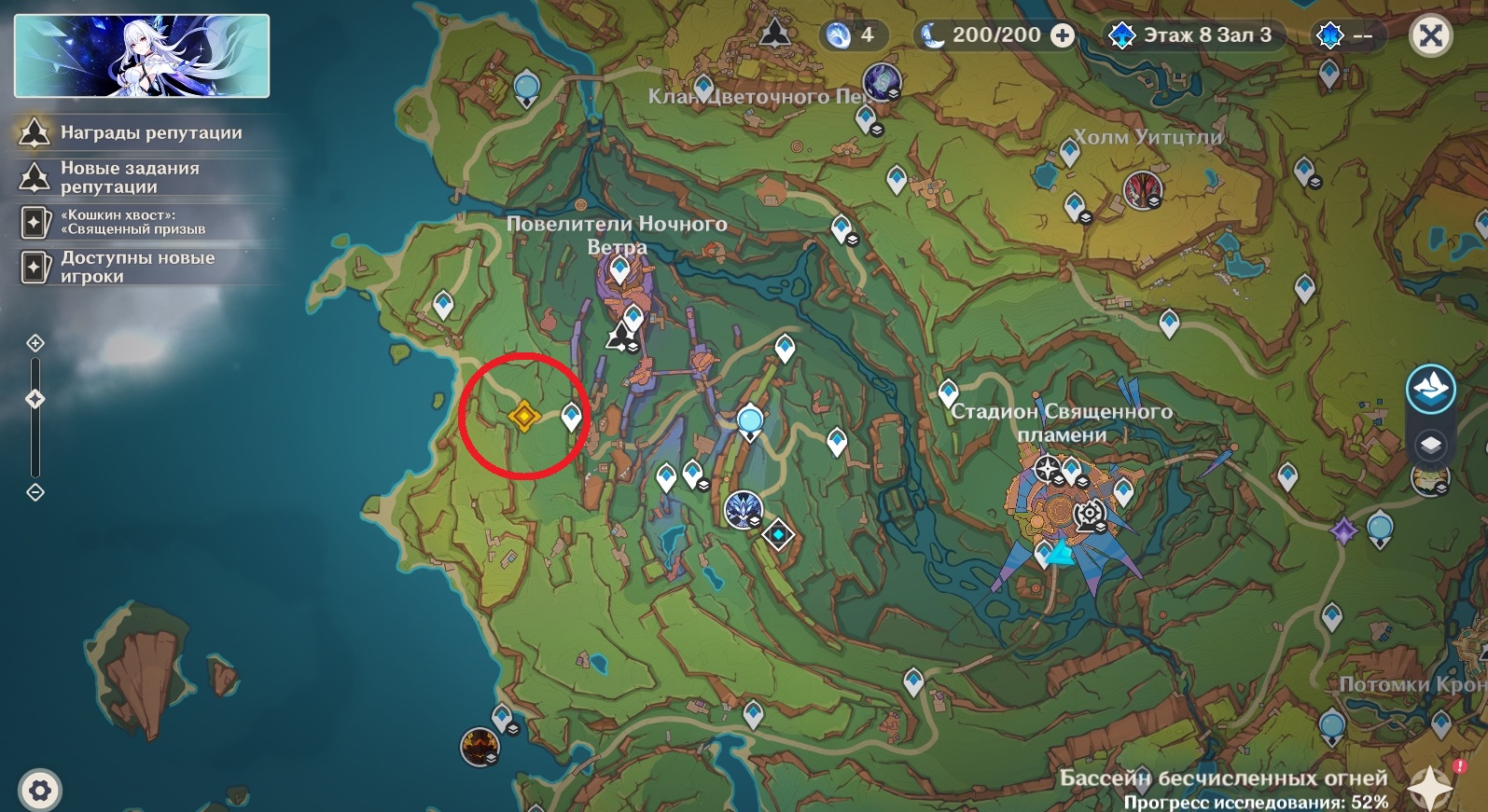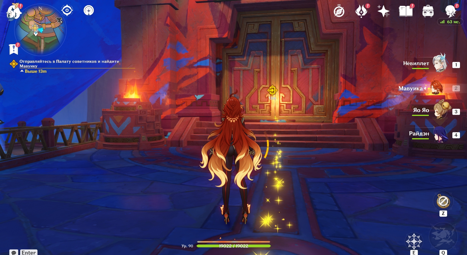 После завершения кат-сцены переместитесь на Стадион Священного пламени и найдите Мавуику в Палате советников. Пиро Архонт сообщит, что уже знает об активизации Ордена Бездны и попросит посетить клан Повелителей Ночного Ветра, так как основное сражение сейчас проходит на их территории.