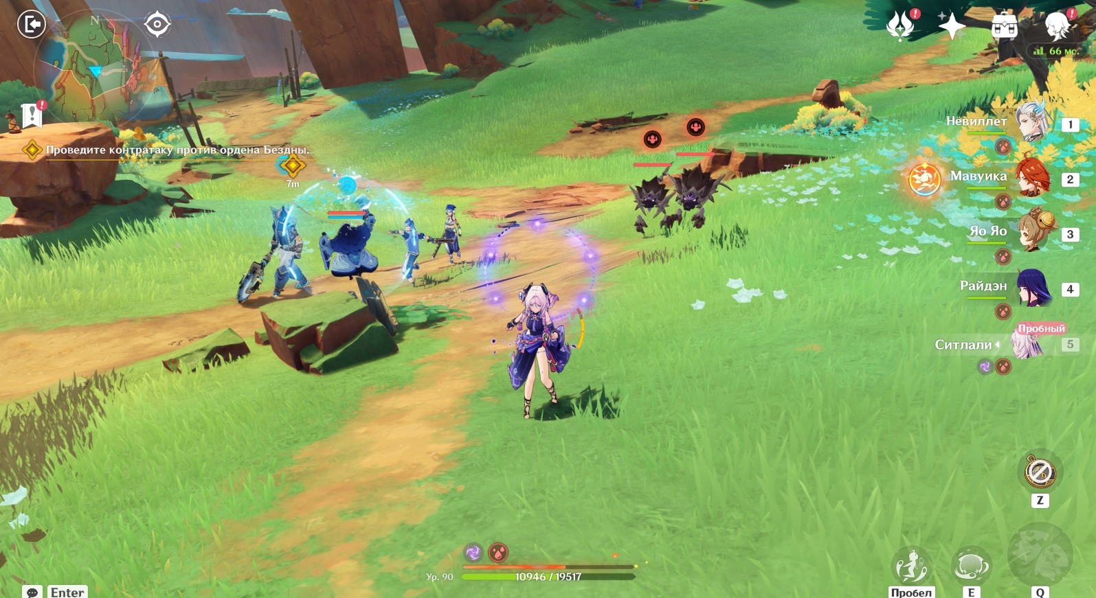 1 | После входа в особый сюжетный режим настройте отряд, если это требуется, а после перелетите через пропасть на планере. Впереди вас ждут Пиро и Крио Маги Бездны | ![]() |