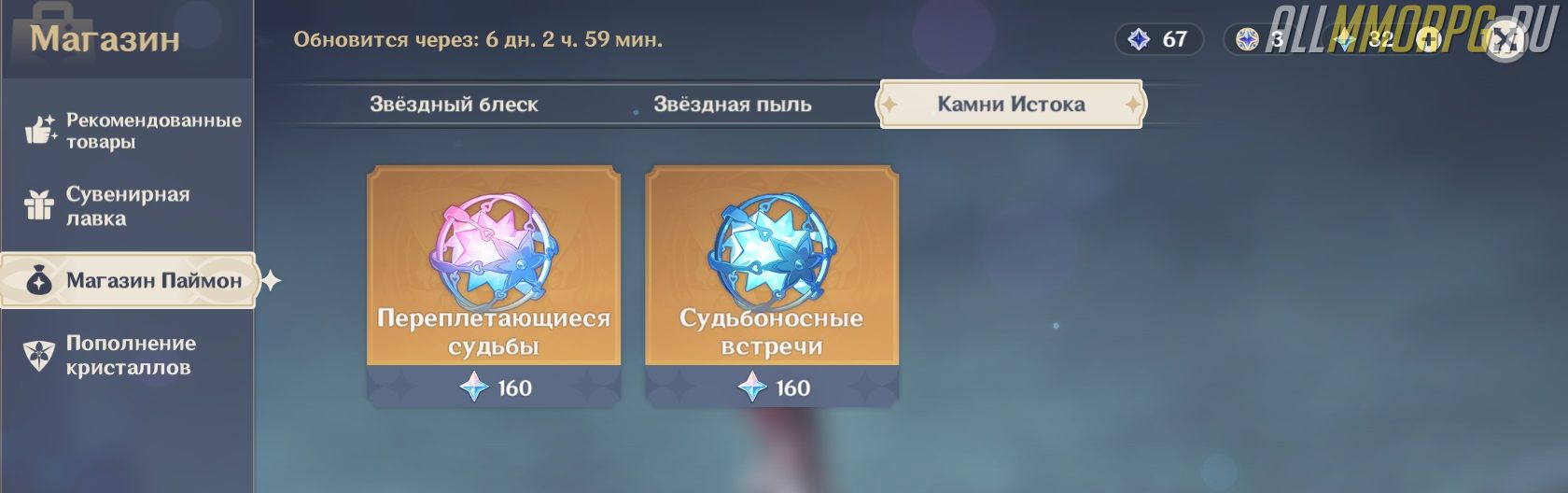 Свободный звездный блеск и Свободная звездная пыль – это еще несколько разновидностей внутриигровой валюты. Они используются для покупки различных предметов в магазине Паймон, но при желании вы можете обменять их на Камни Истока.