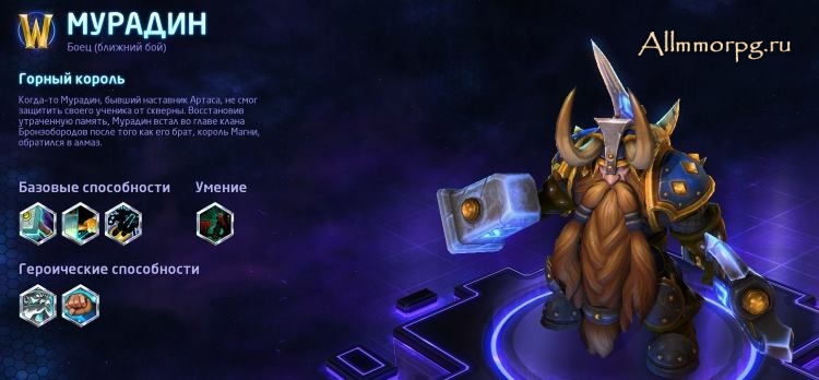 во многом похожи. Обоим требуется сильная защита, но при наличии необходимой поддержки они могут обрушить на врагов всю свою мощь. Мурадин способен защитить Кель'таса и Джайну, оглушив или замедлив противников, угрожающих могущественным магам. Кроме того, способности для контроля позволяют Кель'тасу или Джайне тщательнее прицелиться при использовании Снежной бури или Огненного столба.