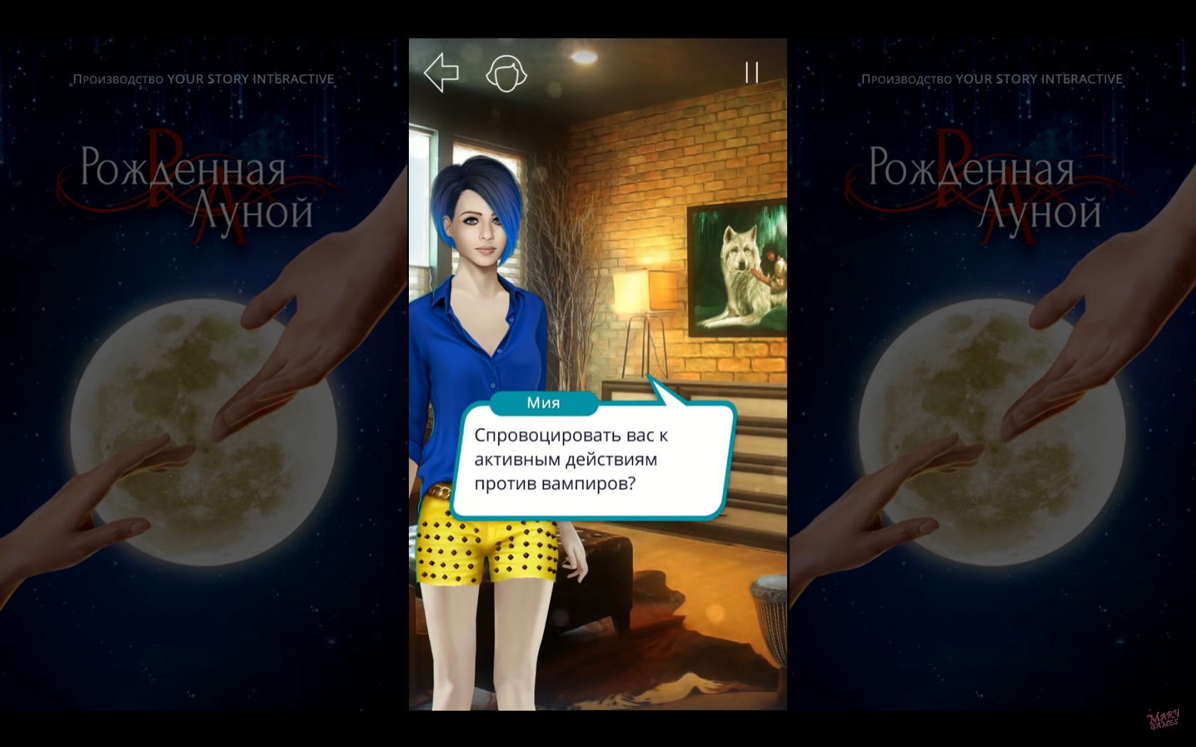 - «Задержаться и задать вопрос» (стоит 9 алмазов) - узнаем от него о древней войне, в которой принимали участие такие же, как и Мия – полувампиры.