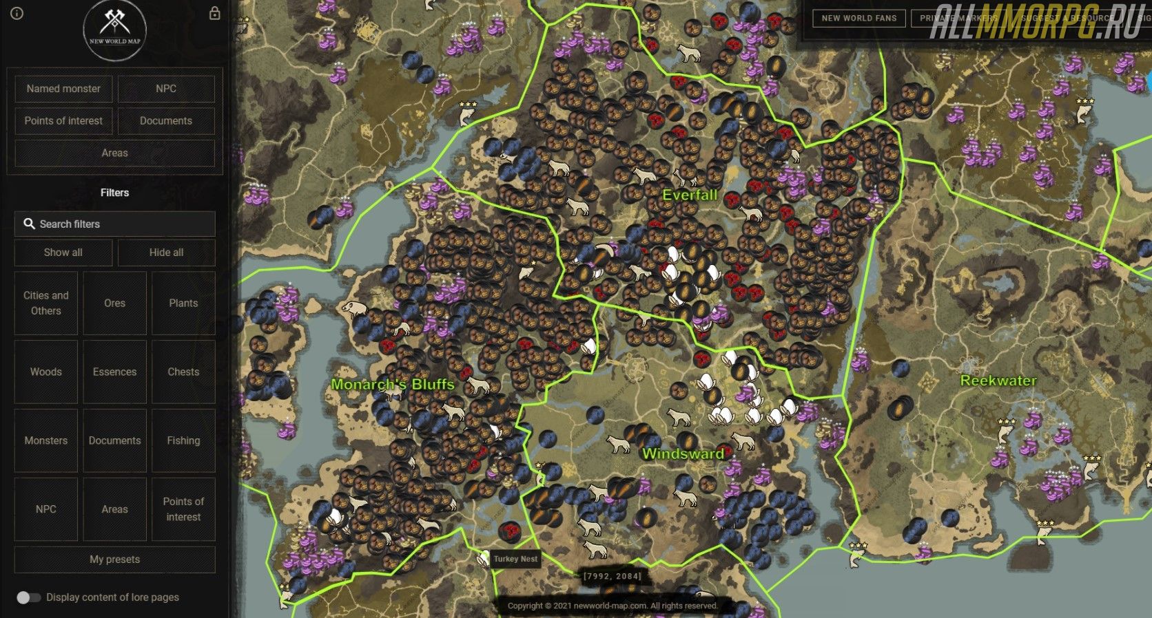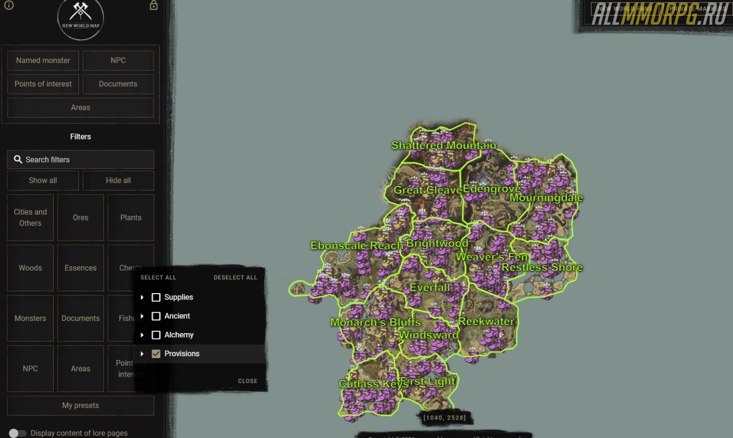 Для поиска существ, трав, ягод, овощей и ящиков с провизией воспользуйтесь интерактивной картой.