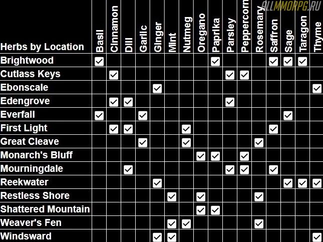 Специи - это редкий ингредиент, который добывается путем переработки трав. Если вы не можете найти нужную траву, воспользуйтесь следующей таблицей: