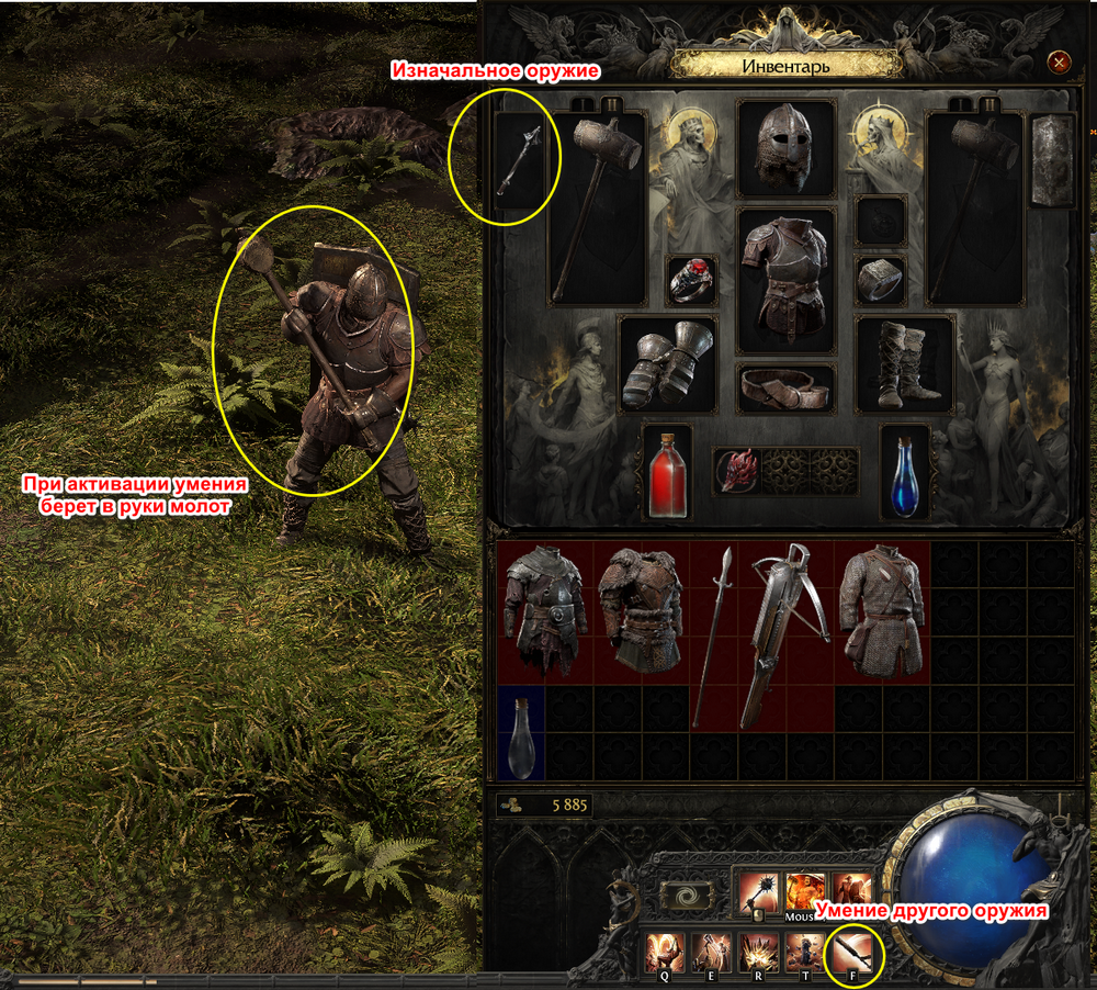Любопытным моментом в Path of Exile 2 является то, что на панель быстрого доступа можно устанавливать умения сразу всех видов вооружения вашего обмундирования. Поэтому, если вы выбрали два варианта, то выбор соответствующих умений будет достаточно большим. И если вы решите воспользоваться способностью, которая привязана к второму оружию, то персонаж автоматически все сменит и позволит реализовать задуманное. Это крайне удобная фича, которая имеет большой тактический потенциал. Правда, не забывайте про ограниченное количество ячеек панели быстрого доступа. С другой стороны, при правильном использовании данной механики можно сделать персонажа еще сильнее. Поэтому не забывайте экспериментировать и пробовать найти отличную сборку.