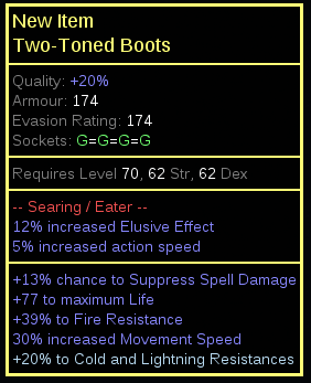 Выберите сапоги со скоростью передвижения, здоровьем и сопротивлениями. Если вам требуется немного подавления чар до предельного значения, сапоги помогут вам его добрать.