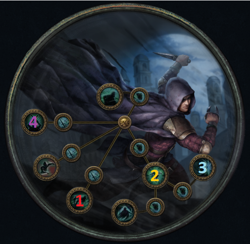 - Мастер побега. Открывает доступ к другим узлам, дает уклонение за каждую единицу энергетического щита на шлеме и энергетический щит за каждую единицу уклонения на нагруднике. Упрощает применение Токсичного дождя.