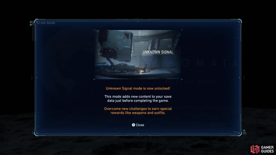 После прохождения основной сюжетной линии Pragmata и просмотра титров, игра не заканчивается. Вам открываются новые костюмы, повышенная сложность и специальный режим Unknown Signal, доступный в главном меню. Чтобы войти в этот режим, выберите сохранённую игру с завершённым сюжетом, и вы окажетесь в Shelter, где Cabin предупредит о незваном госте. Отправляйтесь в Hidden Chamber через трамвай — это новая остановка на карте.