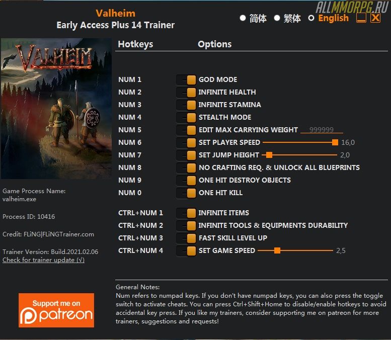 1. Обзор трейнера для Valheim