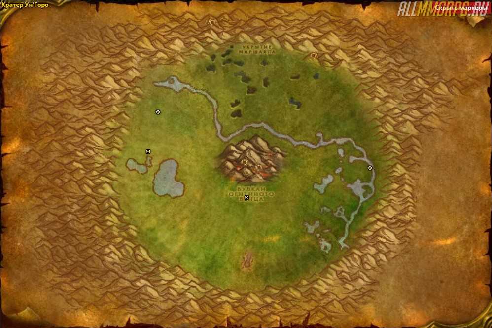 Маршрут для горняков пролегает по внешнему краю Кратер Ун'Горо. Также кое-какую руду можно найти у Вулкана Огненного Венца: