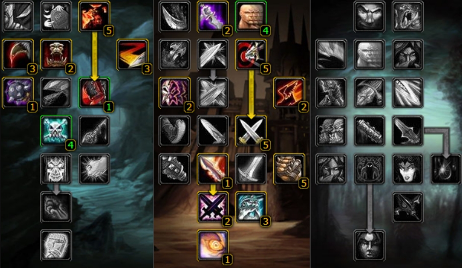 Специализация на кинжалах и Специализация – природа повышают вероятность попадания атак в цель и применения ядов. Специализация на кинжалах дает 5 дополнительных единиц навыка владения оружием, помогает быстрее набрать 9% меткости ближнего боя и сосредоточиться на других характеристиках. Специализация – природа повышает вероятность применения ядов. Она очень важна, так как разбойникам редко удается набрать 16% рейтинга меткости заклинаний.