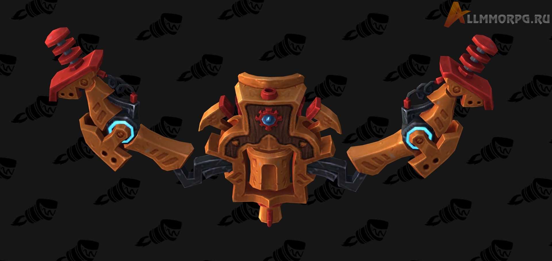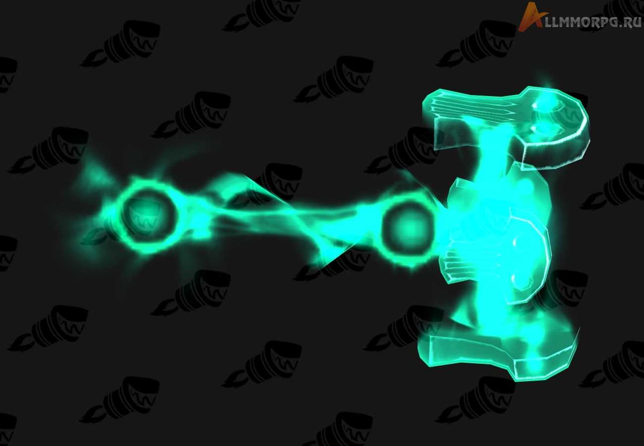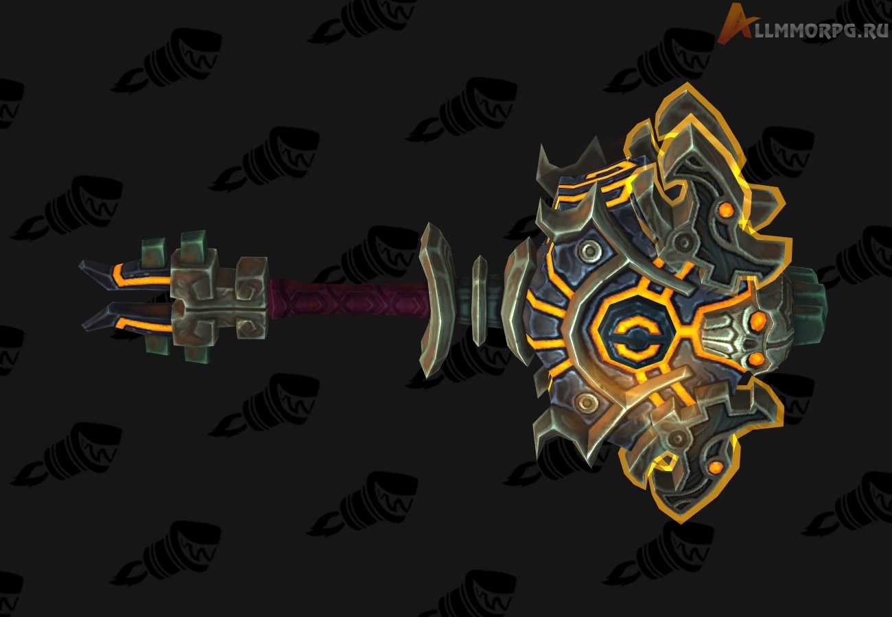 - Внешне облик напоминает молот Райнхардта из Overwatch.