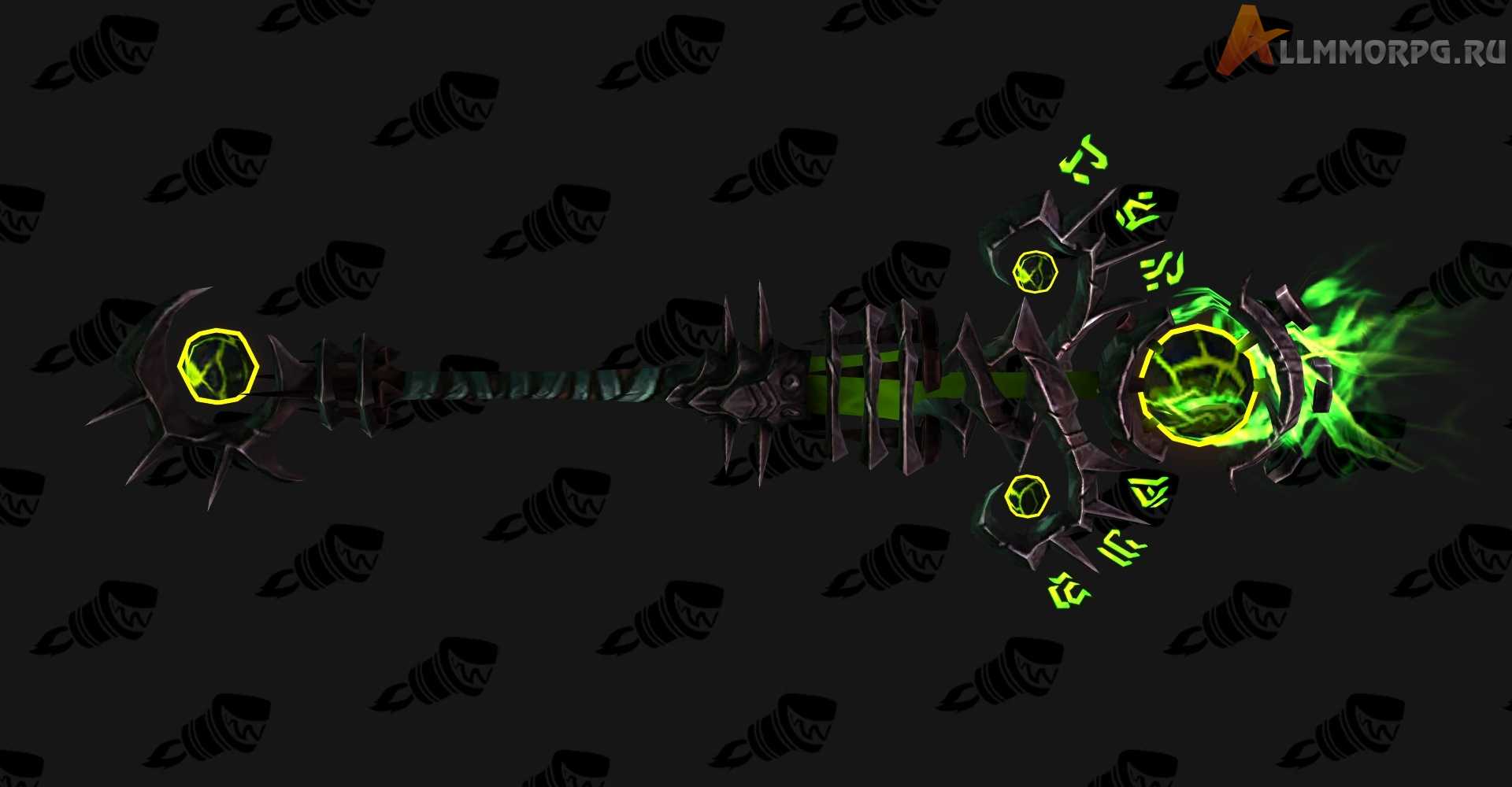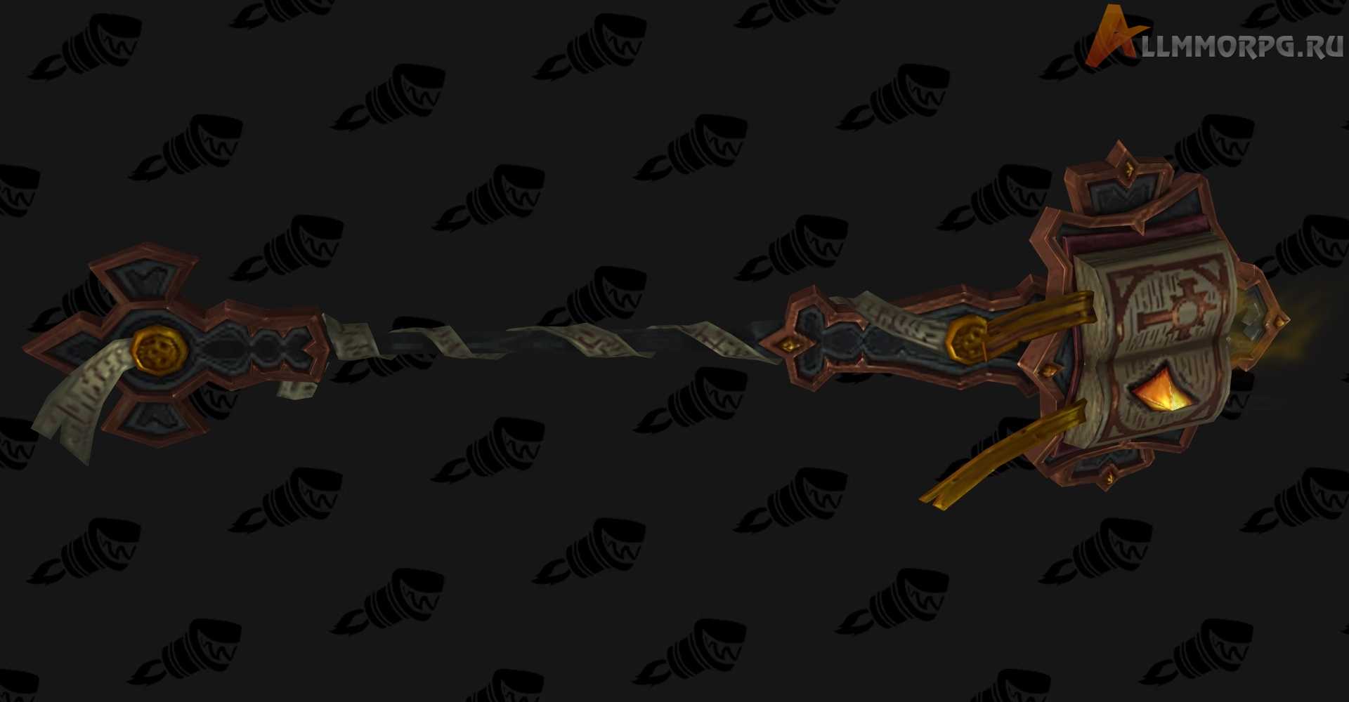 Скрытый эффект: Владелец оружия может поговорить с эльфом-кузнецом в Даларане и получить в награду силу артефакта. Кроме того, трупы убитых им монстров обугливаются и дымятся.