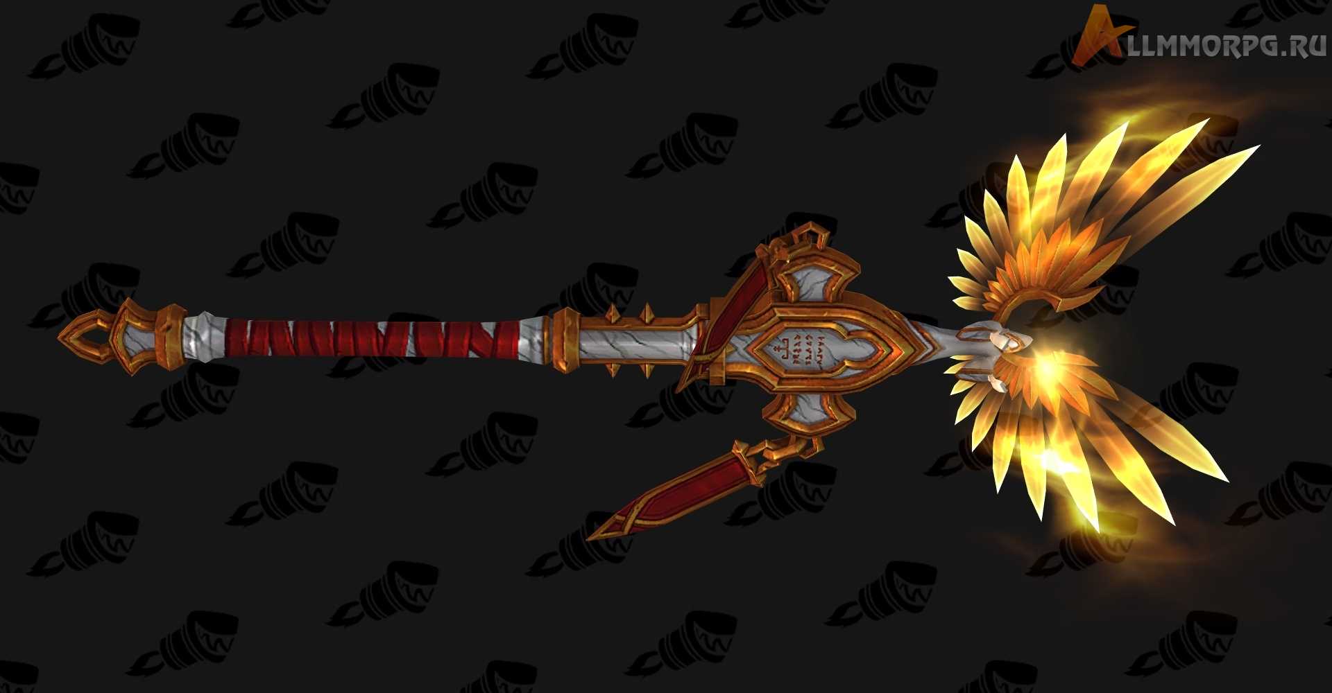 - Для получения облика необходимо объединить Венец Светорожденных (падает с Hyrja) и Жезл Перерожденных (приобретается у Валарьяров, требуется Превознесение).