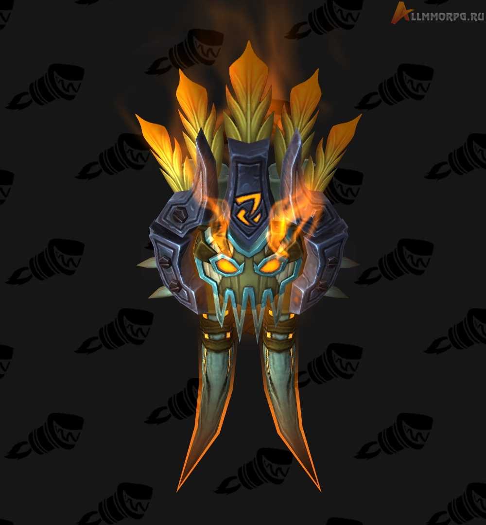 - При убийстве босса, призываемого в ходе Ритуала Рока, можно получить Пылающее сокровище Саргераса.