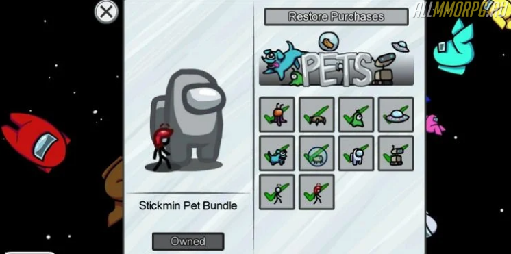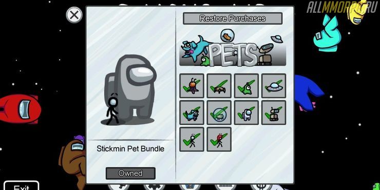 Однако покупка Among Us в Steam – это не единственный способ отблагодарить издателя проекта компанию Innersloth. Еще в игре можно приобрести забавных питомцев, которые будут сопровождать вашего персонажа в каждом матче, за 2,99$.