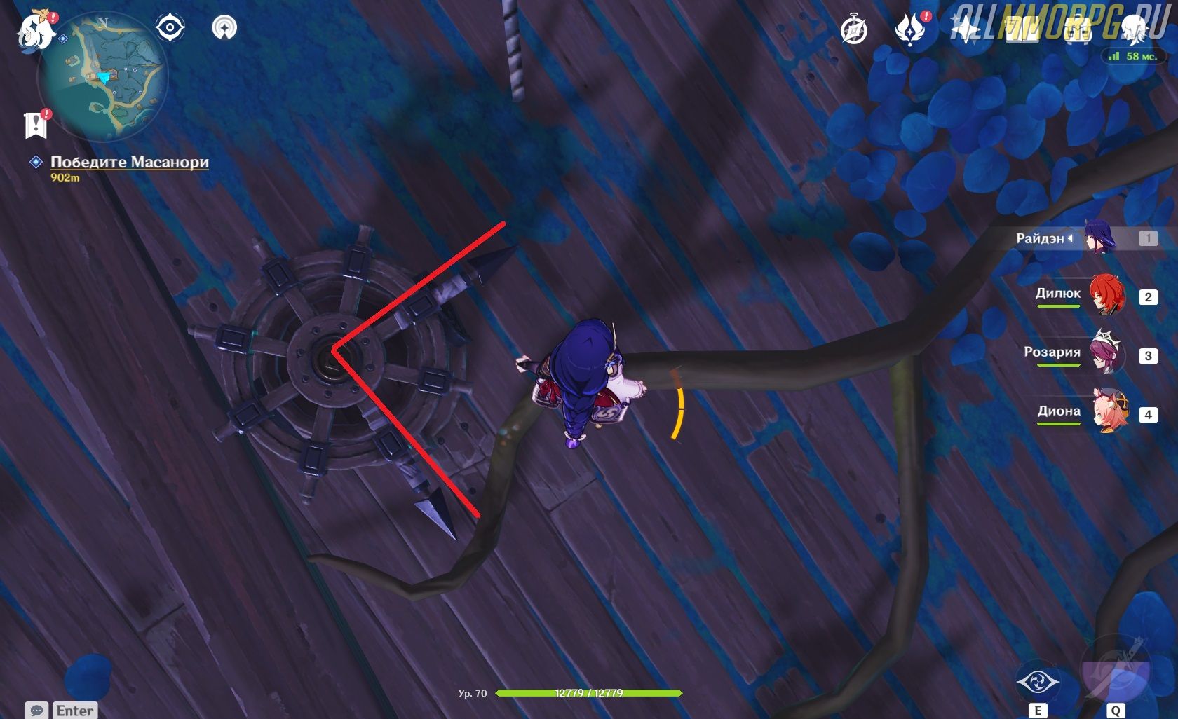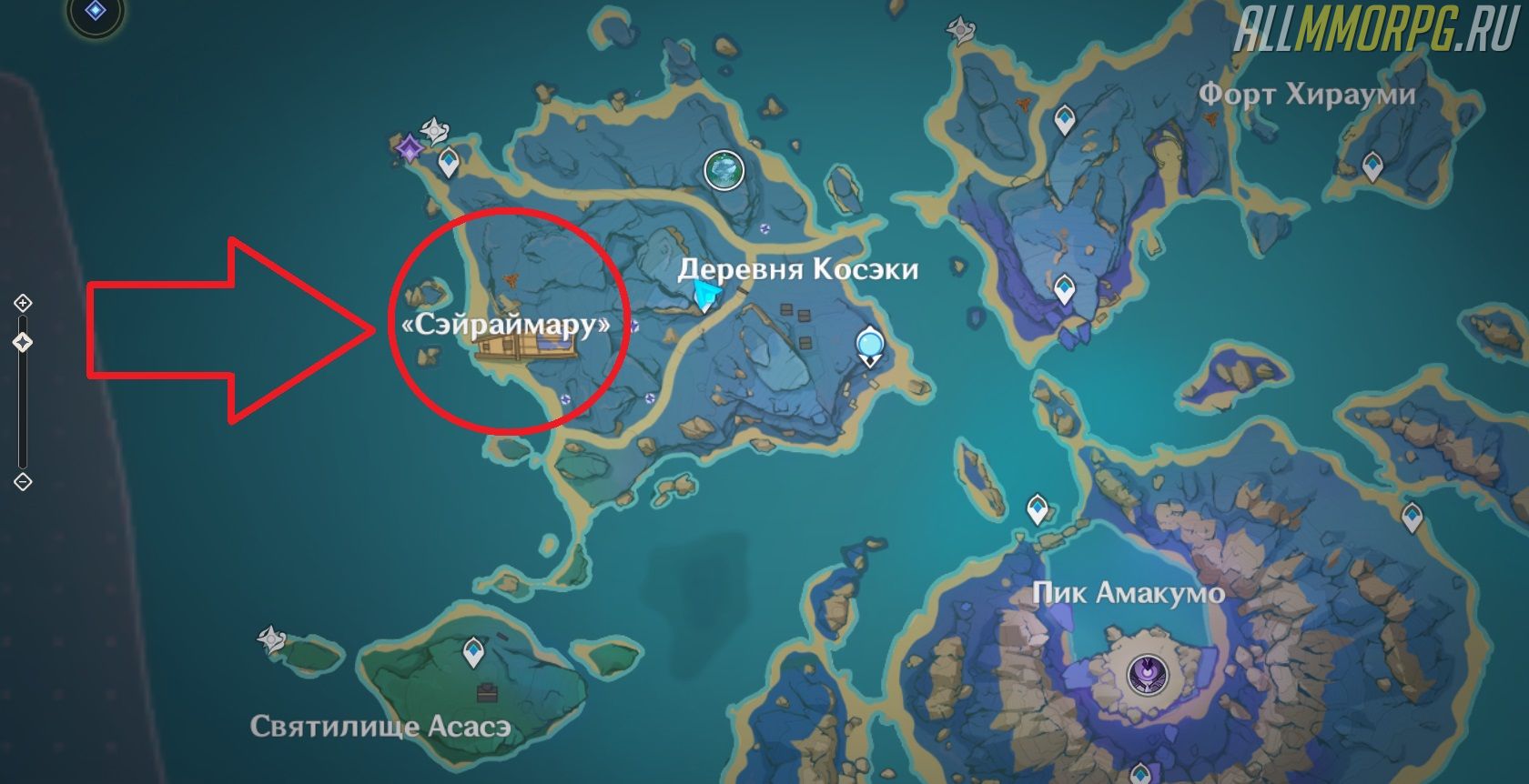 Прежде чем мы приступим к решению головоломок на корабле Сэйраймару, нужно показать вам место, где он находится. Местоположение разбитого судна отмечено на скриншоте ниже: