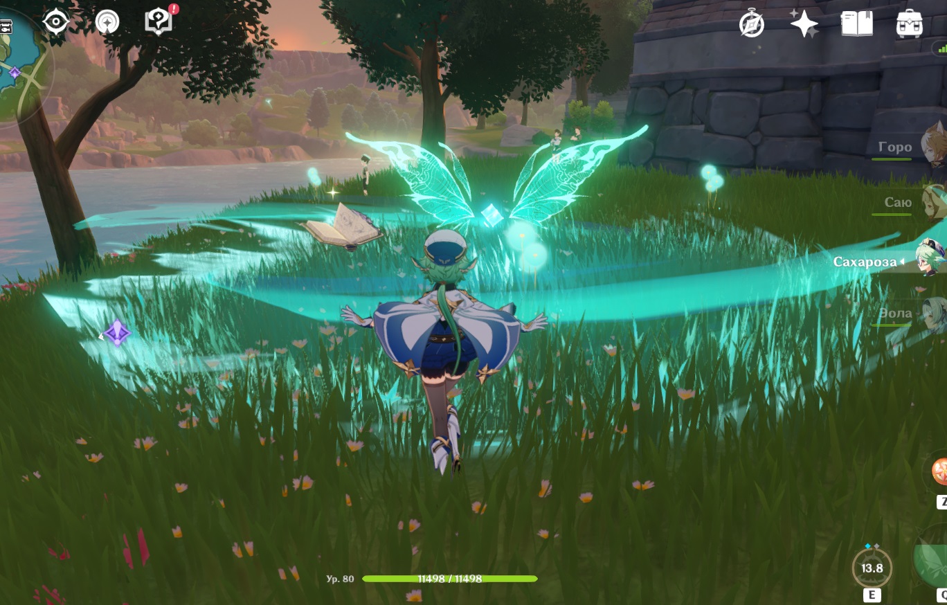 3. Отправляемся собирать компоненты. Хвост ящерицы добывается при ловле ящериц в открытом мире. Если вам повезло и вы уже получили из молитвы героя Саю, то его нахождение в отряде облегчит получение материалов из существ, поскольку они убегают от игрока, когда тот приближается к ним, что затрудняет сбор алхимических ресурсов. Саю имеет пассивный талант, который позволяет не пугать своим присутствием животных. Семена одуванчика можно собрать только в Мондштадте. Ищем одуванчики под стеной столицы и используем рядом с ними любое Анемо умение Путешественника или другого героя этой стихии. Как только вы развеете одуванчик, подойдите к растению и соберите семя.