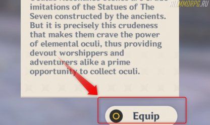 - Закройте инвентарь и найдите справа внизу экипированный предмет.